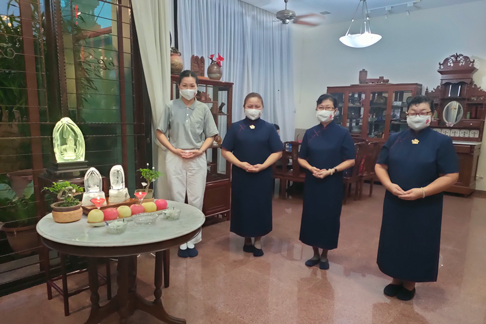 2021年5月9日,新加坡东区志工共设立68个莲花点,连线参与全球云端浴佛。(摄/余俊槺)