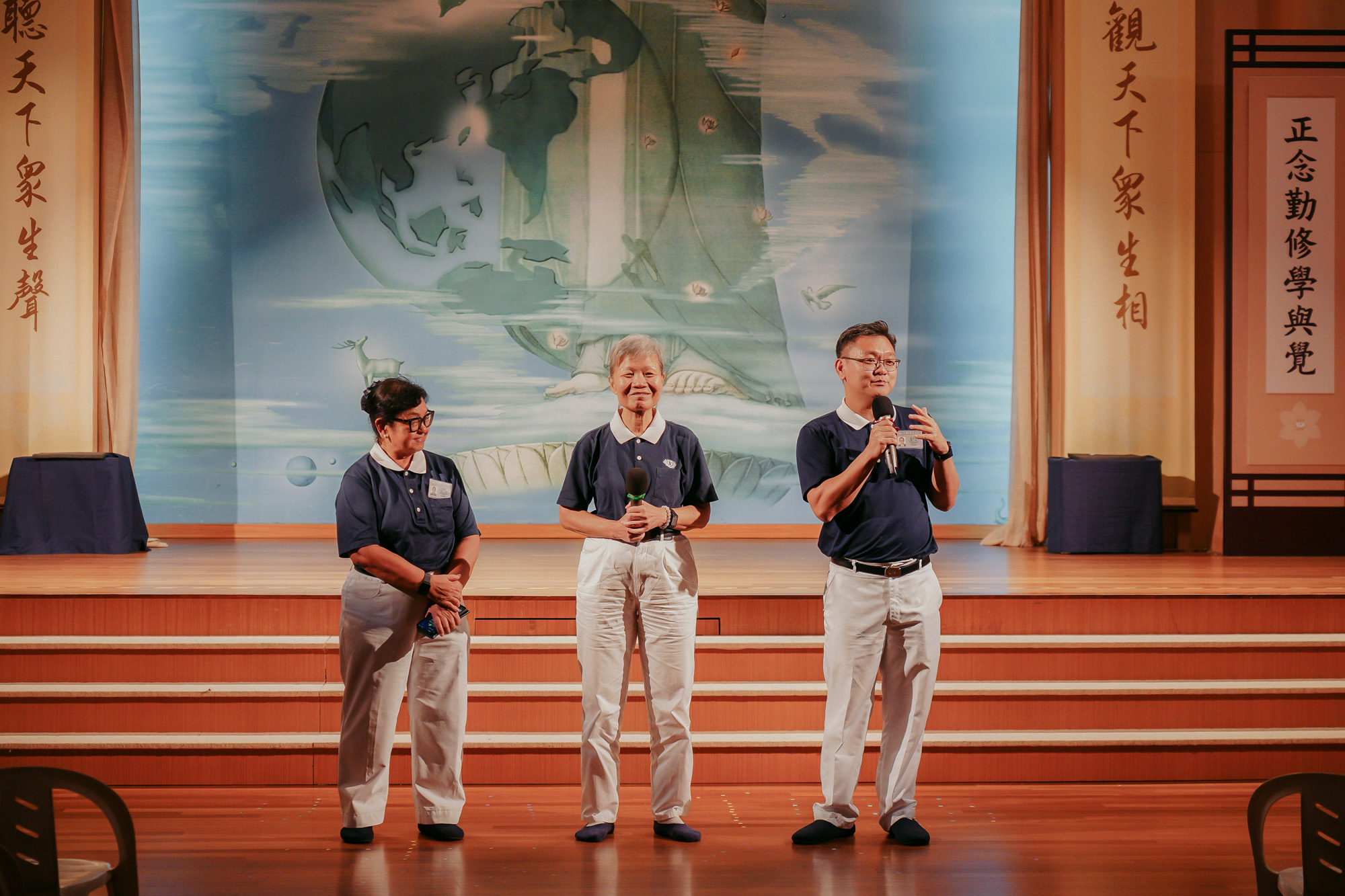 东区和气组长们(左起)林翠莲、章爱玉、林志华,勉励准慈委在慈济路上要勇猛精进,秉持佛心师志。