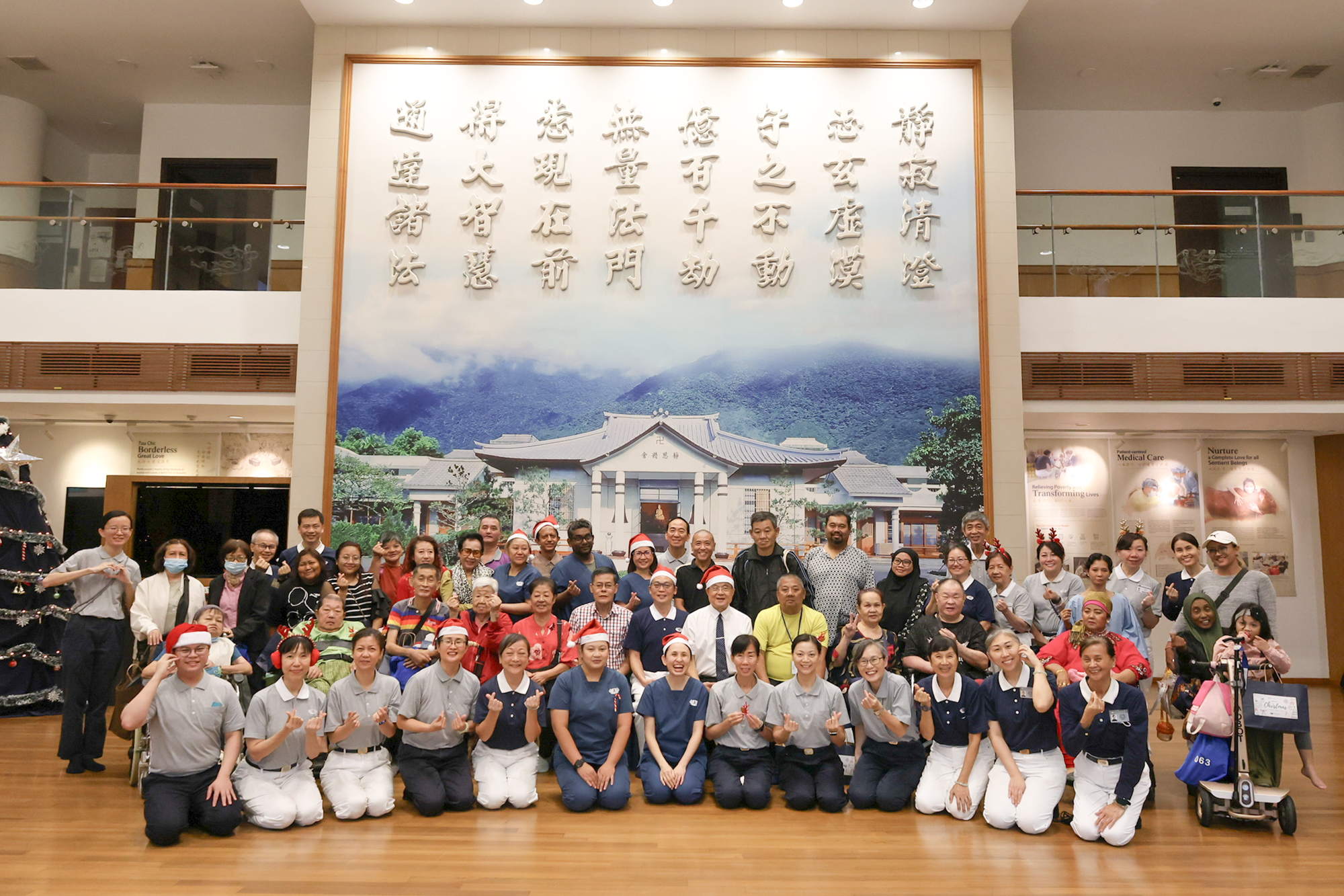聚会当天,静思堂的圣诞装饰闪烁温暖,志工扮成的圣诞老人在门口热情相迎肾友的到来。肾友们有的拄着拐杖,有的由家人陪伴,虽行走缓慢,但每一步都走得郑重,每一张脸都带着笑意。